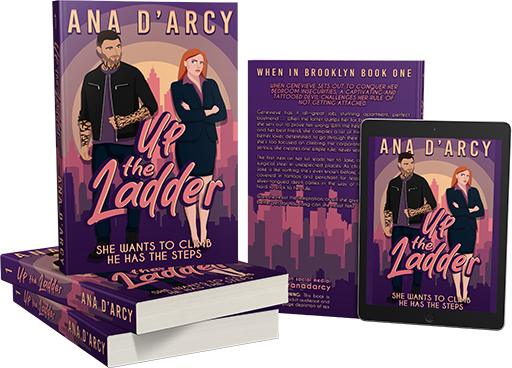 Welcome to this little sneak peek into Up the Ladder, a steamy rom-com that comes out on June 14th! If you have enjoyed this little teaser, you’ll find links below that’ll allow you to pre-order the book through several retailers. There are three versions available: the paperback, with a cartoon cover, the hardback, with a discreet cover, and the ebook!